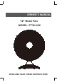 OWNER’S MANUAL 12" Desk Fan MODEL: FT30-U2X READ AND SAVE THESE INSTRUCTIONS 1