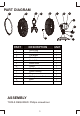DIAGRAMME DES PIÈCES A C B E D F G H I J K M PIÈCE A B C D E DESCRIPTION Anneau de la grille Grille avant Pale de ventilateur Vis de la pale F G H I J K Grille arrière Axe du moteur Commutateur Bouton d'Oscillation Bloc moteur Prise Bouton d'ajustement L M Base Vis L UNITÉ 1 1 1 1 1 1 1 1 1 1 1 1 1 ASSEMBLÉE LES OUTILS NÉCESSAIRES:Tournevis Phillips 11