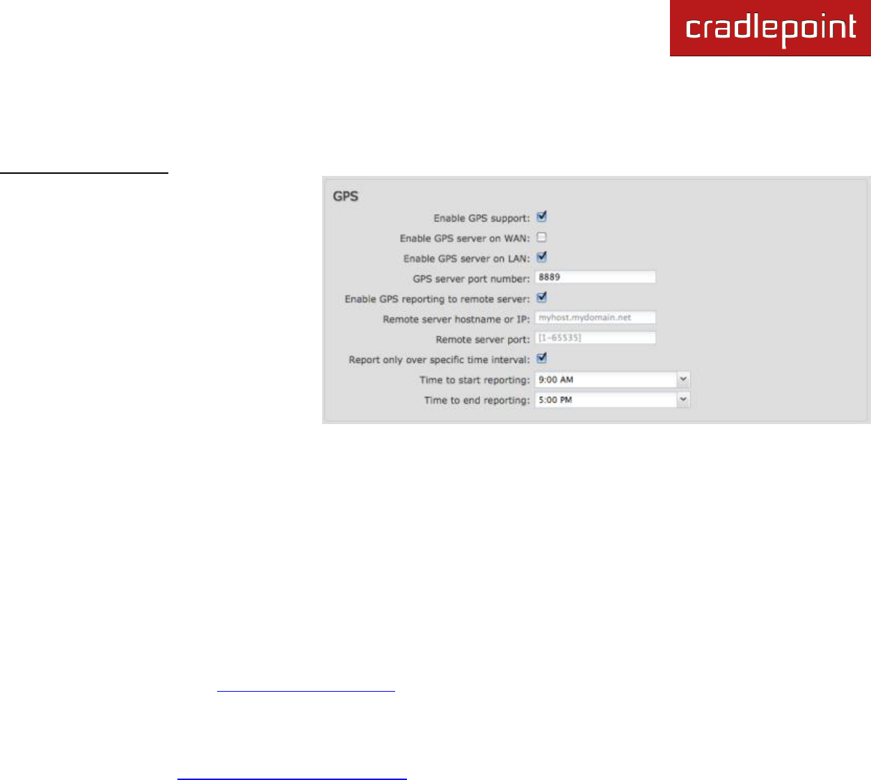 Enable GPS reporting to remote server: Enables periodic reporting of GPS NMEA sentences to a remote server.