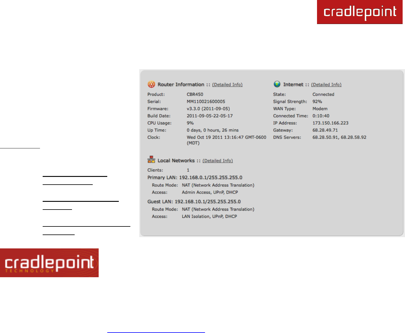 to this Dashboard. Also, you can click on the CradlePoint logo in the upper left-hand