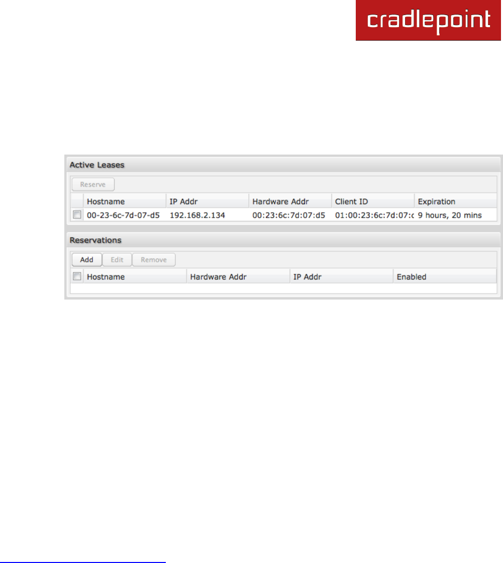 Addr), it is much simpler to select a device under the Active Leases section and click ―Reserve.‖ The selected device‘s
