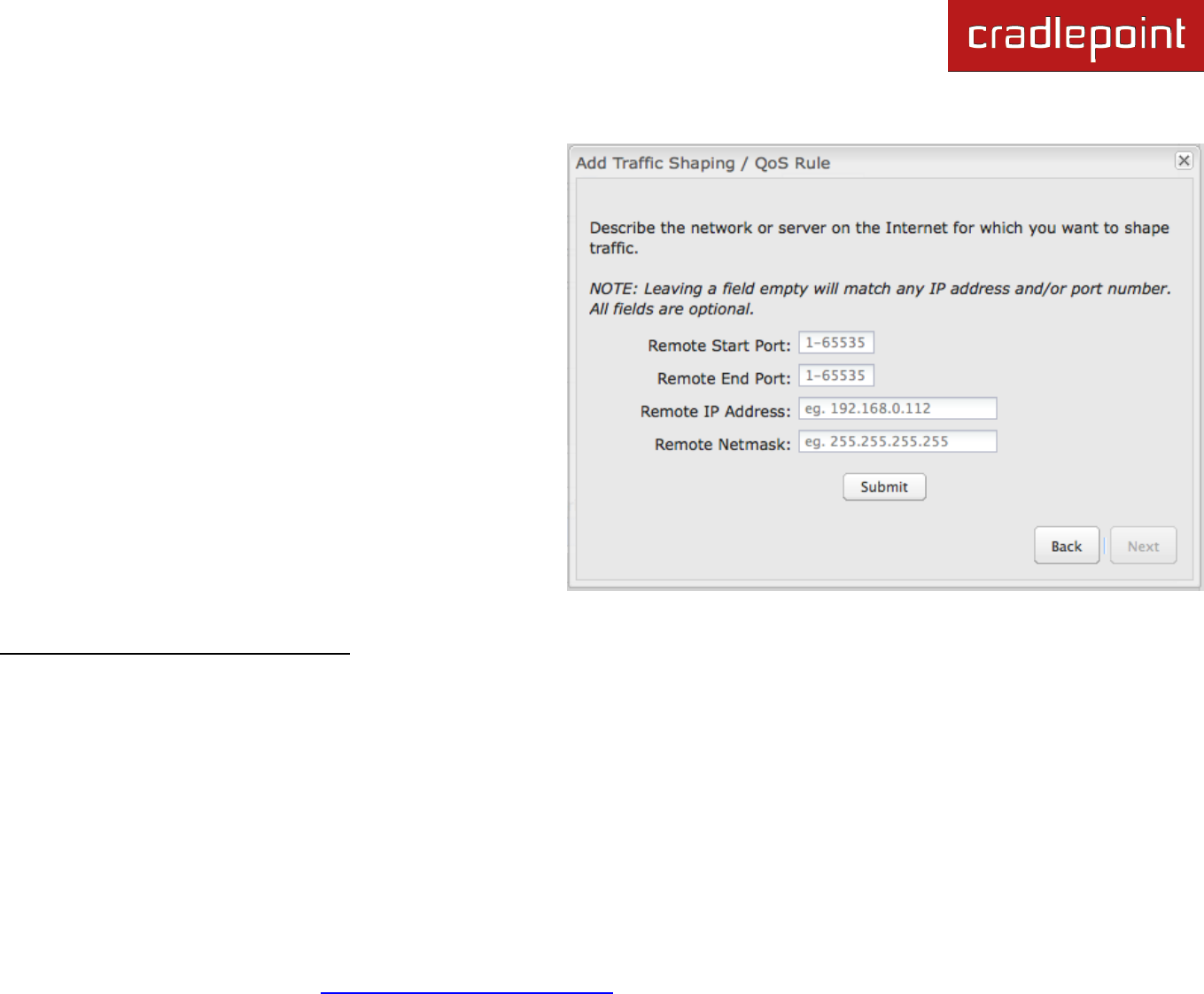NOTE: Leaving a field empty will match any IP address and/or any