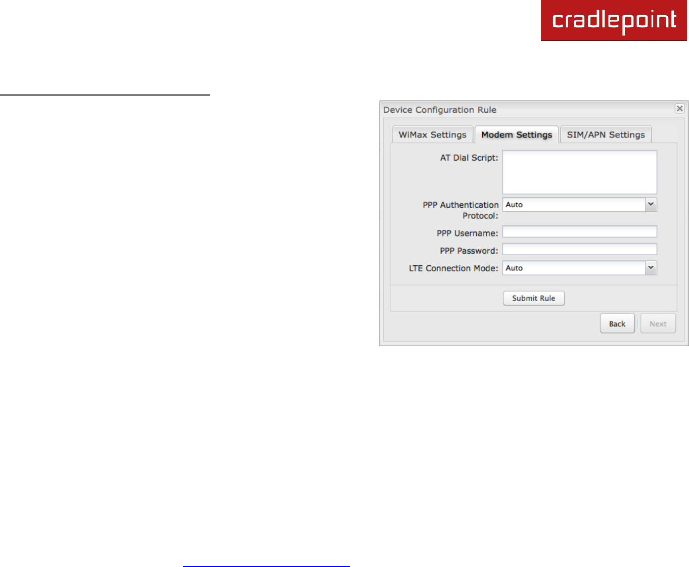 Configuration Rule: Modem Settings