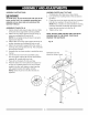 ASSEMBLY INSTRUCTIONS ASSEMBLE MITER SAW TO STAND 1,4 WARNING I 1. 2. To avoid injury, do not connect this miter saw to the power source until it is completely assembled and adjusted and you have read and understood this Carefully place the miter saw on top of stand. Line up the four mounting holes in the saw base to the stand. 3. Fasten the saw to the stand using the four mounting bolts (9), four washers (10) and four nuts (11 ). Operator's Manual.