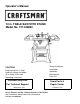 Operator’s Manual 10 in. TABLE SAW WITH STAND Model No. 137.248850 CAUTION: Before using this Table Saw, read this manual and follow all its Safety Rules and Operating Instructions Customer Help Line For Technical Support 1»800-»843-1682 Sears, Roebuck and Co., Hoffman Estates, IL 60179 USA Visit our Craftsman website: www.sears.com/craftsman Part No.