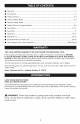 [] Warranty ...................................................................................................................................... 2 [] Introduction 2 [] Safety Symbols ........................................................................................................................ 3-4 [] General Safety Rules ............................................................................................................... 5-7 [] Specific Safety Rules ........................