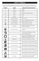 Some of these following symbols may be used on this tool. Please study them and learn their meaning. Proper interpretation of these symbols will allow you to operate the tool better and safer. SYMBOL NAME DES|G NAT|ON/EXPLANAT|ON V Volts Voltage A Amperes Current Hz Hertz Frequency (cycles per second) W Watt Power min Minutes Alternating Time Current Type of current Direct Current no ] ...