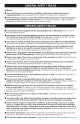 ,_,WARN|NG: READ AND UNDERSTAND ALL iNSTRUCTiONS. Failure to follow all instructions listed below may result in electric shock, fire and/or serious personal injury. | 1 ill Before using battery Charger/Adapter, read all instructions and cautionary markings in this manual, on battery Charger/Adapter, battery and product using battery to prevent misuse of the products and possible injury or damage. _kCAUTION.