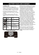 BATERÍA Y CARGADOR PANEL LED DE LA BATERÍA ■ El panel consta de 2 LED en la parte frontal de la batería. Presione el botón del panel para que el LED le indique el nivel de carga de la batería. ■ El nivel de carga de la batería se puede verificar cuando la batería se conecta o se retira de la desbrozadora.