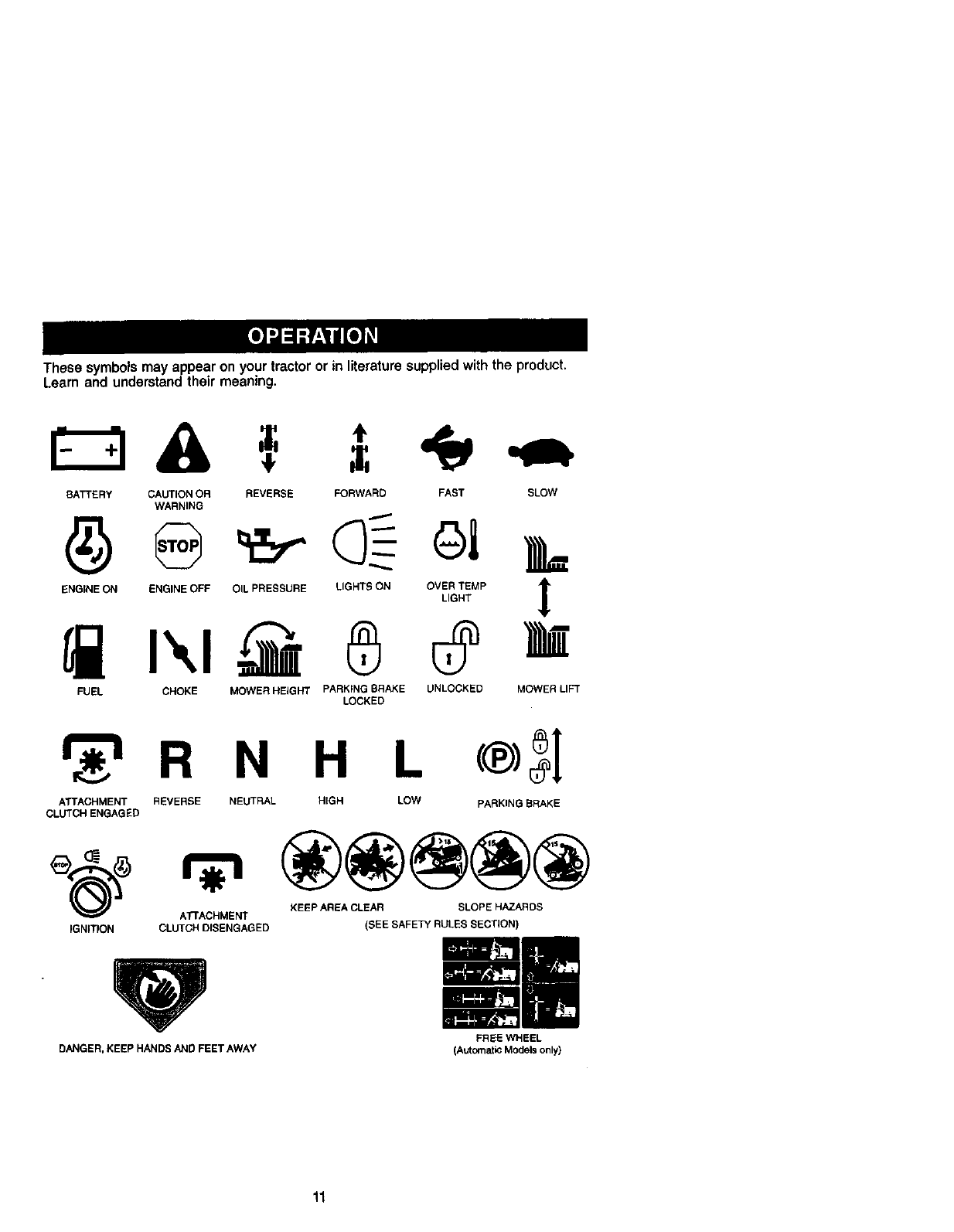 FUEL CHOKE MOWER HEIGHT PARKING BRAKE UNLOCKED
