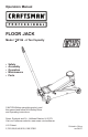 Operators Manual FLOOR JACK Model 950156 - 4 Ton Capacity • • • • • Safety Assembly Operation Maintenance Parts CAUTION: Before using this product, read this manual and follow all its Safety Rules and Operating instructions. Sears, Roebuck and Co., Hoffman Estates, IL 60179 Visit our Craftsman website: www.sears.com/craftsman U.S.