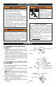 OPERATION LOWERING THE JACK • SLOWLY open the release valve by turning the handle counterclockwise, but never more than 1/2 full turn at a time. OPERATING PRINCIPLES • With release valve closed, an upward stroke of the jack handle draws oil from the reservoir tank into the plunger cavity. Hydraulic pressure holds a valve closed, which keeps the oil in the plunger cavity. • A downward stroke of the jack handle releases oil into the cylinder, which forces the ram out. This raises the saddle.