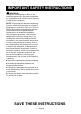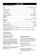 TABLE OF CONTENTS / TABLA DE CONTENIDOS ENGLISH ■ Warranty.................................................................... . 2 ■ General Safety Instructions.....................................3-5 ■ Specific Safety Instructions....................................... . 6 ■ Important Safety Instructions......................................7 ■ Symbols...................................................................8-9 ■ Features................................................................. ...