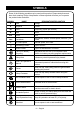 SYMBOLS SYMBOL NAME DESIGNATION/EXPLANATION Eye Protection Wear eye protection. Ear Protection Wear ear protection. Bar Nose Contact Avoid bar nose contact. Kickback DANGER! Beware of kickback. One handed Do not operate the saw using only one hand. Operate With Two Hands Hold and operate the saw properly with both hands. Keep Away From Water Do not dispose of battery packs in rivers or immerse in water. Keep Away From Fire Do not dispose of battery packs in fire.