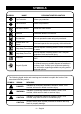 SYMBOLS Some of the following symbols may be used on this product. Please study them and learn their meaning. Proper interpretation of these symbols will allow you to operate the product better and safer. SYMBOL NAME DESIGNATION/EXPLANATION V Volts Voltage A Amperes Current Hz Hertz Frequency (cycles per second) W Watt Power hrs Hours Time /min Per Minute Revolutions, strokes, surface speed, orbits etc.