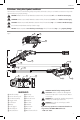 Français • • s’il y a un risque de foudre. Cela réduit le risque d’être frappé par la foudre. Utilisez toujours les deux mains lorsque vous utilisez la scie à long manche. Tenez la scie à long manche avec les deux mains pour éviter de perdre le contrôle. Utilisez toujours un casque protecteur lorsque vous utilisez la scie à long manche au-dessus de votre tête. Les débris tombants peuvent entraîner une blessure corporelle grave.