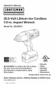 KNOW YOUR iMPACT WRENCH (Fig.l) Fig. 1 1/2" Square Drive Direction-ofRotation Selector (Forward/Lock-off/ Reverse) Variable-speed Trigger Switch LED Worklight Battery Pack Power Bar Battery-Pack Button Release PRODUCT SPECIFICATION Motor 20 Volt DC Switch VSR (Variable Speed Reversible) No Load Speed 0-1900 RPM Impacts 0-2100 BPM per minute Torque Wrench 300 ft-lbs Weight (with battery) 7.