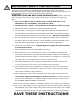 . Failure to follow all of the instructions listed below may result in electric shock, fire and/or serious personal injury.