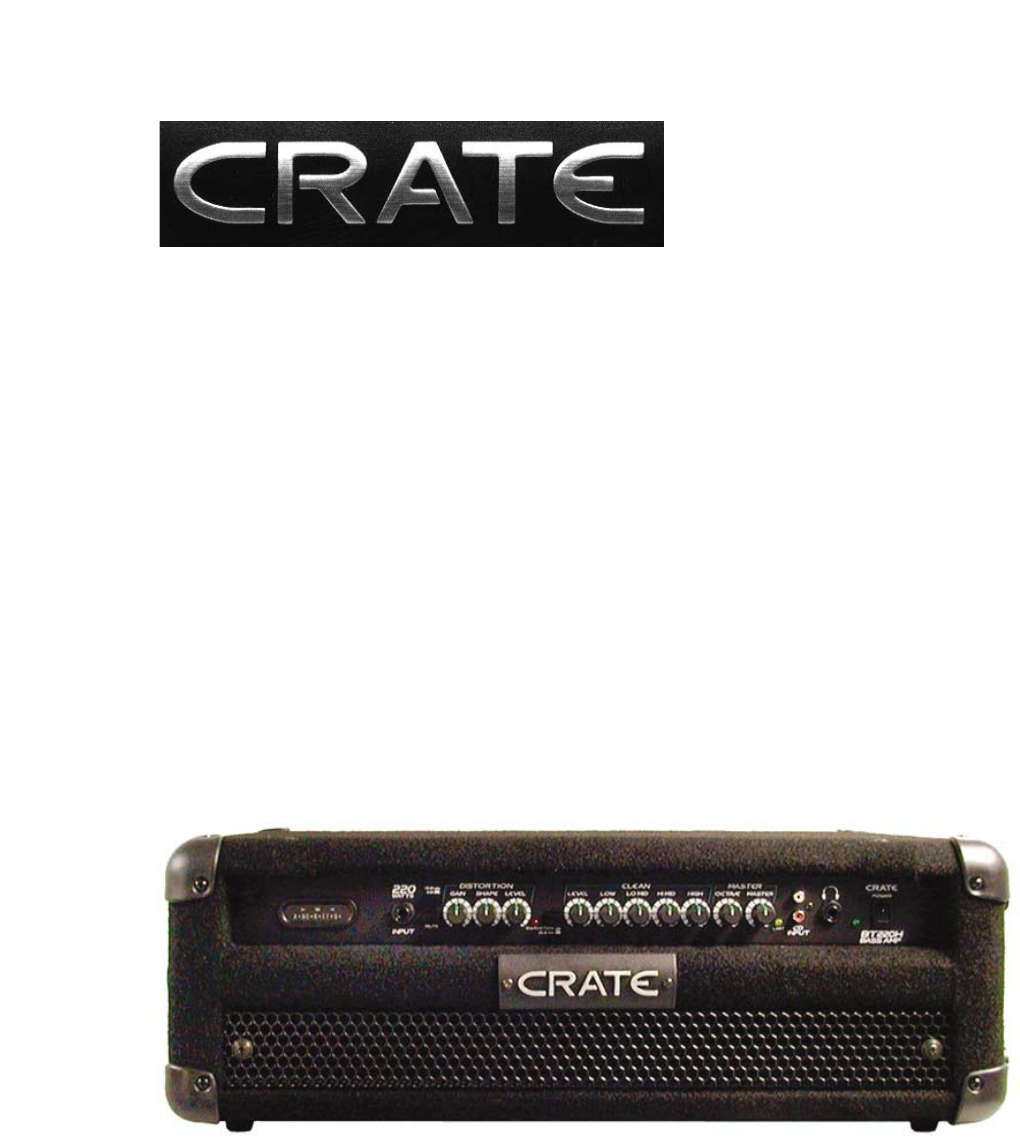 BT220H Bass Amplifier Congratulations! You are now the proud owner of the Crate BT220H Bass Amplifier. The BT220H features two different channels: a Distortion channel, featuring Crate’s exclusive Shape control for quick and easy access to the tone you need, and a Clean channel with a four-band rotary EQ. Another unique and valuable feature of this amplifier is the Octave control. This feature electronically creates a second signal that is one octave lower than the original signal.
