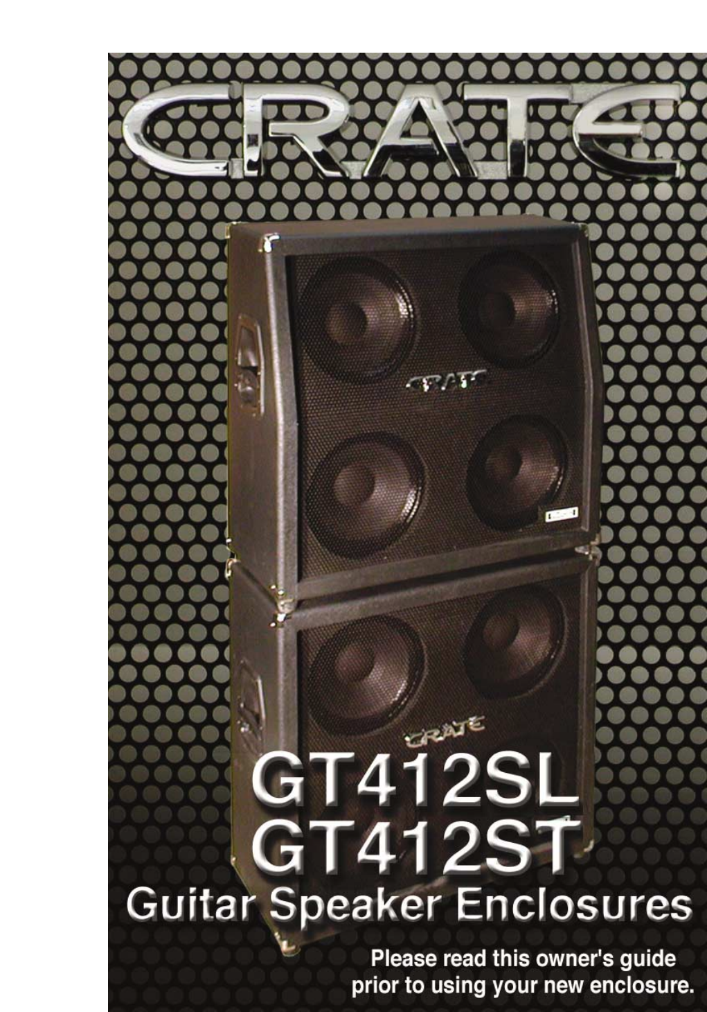GT412SL/ST Guitar Enclosure Your Crate GT412SL/ST 4x12 Guitar Cabinet is built from the finest materials and components available. The cabinet is carefully constructed and then covered with extremely tough Tolex®. The cabinet is then loaded with four Celestion Seventy 80 speakers. The GT412SL/ST comes standard with casters, steel handles, a heavy duty metal grille for ultimate speaker protection, and a switchable, dual-impedance mono/stereo jackplate.