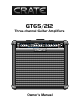 GT65/212 Guitar Amplifier Congratulations! You are now the proud owner of the Crate GT65/212 three-channel guitar amplifier. This rugged amplifier combines outstanding features with serious clean and distorted sounds. Front panel RCA input jacks allow you to play along with your favorite CD or tape. The rear panel Insert Jack allows you to connect your effects for greater flexibility. Channel switching and reverb may be controlled by means of a footswitch.