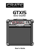 GTX15 Guitar Amplifier Congratulations and thank you for choosing the Crate GTX15 Guitar Amplifier. This rugged amplifier combines outstanding features with serious clean and distorted sounds. The on-board DSP control provides 16 superior digital effects. RCA input jacks allow connection of a CD or tape player for playing along with your favorite music, and the Headphones jack lets you practice in private.