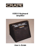 KXB15 Keyboard Amplifier KXB15 TECHNICAL SPECIFICATIONS: Maximum Input Signal Level Accepted 15 volts peak to peak load – 120 VAC line Low Control 15dB Range @ 50Hz Low Mid Control 12dB Range @ 250Hz High Mid Control 13dB Range @ 1kHz High Control 27dB Range @ 10kHz Input Power Requirements 120 VAC, 60Hz, 30VA 100/110 VAC, 50/60Hz, 30VA 230 VAC, 50/60Hz, 30VA Speaker Size and Rating Crate Custom Design 8”, 15 watts Cabinet Size and Weight 14” H x 15” W x 12-1/2” D, 19 lbs.