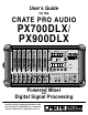 PX700DLX/PX900DLX Powered Mixer Congratulations. You are now the proud owner of one of the most compact, user-friendly, and efficient powered mixers available, the Crate Pro Audio PX700DLX/PX900DLX with Digital Signal Processing. In order to derive the most benefit from the mixer, and to fully understand and appreciate its flexibility and versatility, please familiarize yourself with the mixer by reading through this User’s Guide prior to its use. And Thank You, from Table of Contents: Features . . . . .