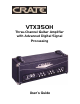 VTX350H Three-Channel Guitar Amplifier with Advanced DSP Congratulations! You are now the proud owner of the Crate VTX350H three-channel guitar amplifier with Advanced Digital Signal Processing. This rugged amplifier combines outstanding features with serious clean and distorted sounds. Dual DSP controls provide 15 modulation effects and 15 delay effects which can be combined for a wide variety of sounds.