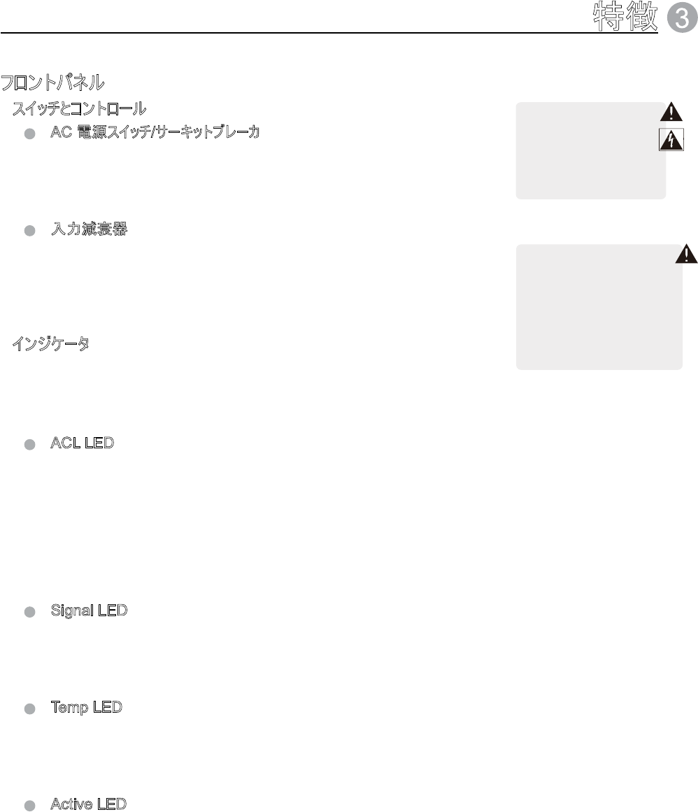 チャンネルの ACL LED は、クリッピングが始まると点灯します。LED の