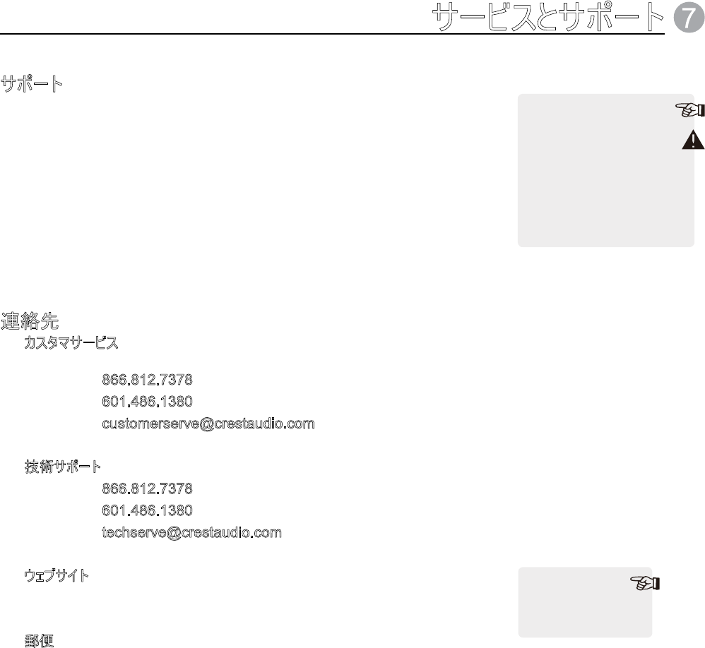 保守サービスを受けるには、最寄りの Crest Audio サービスセンター、代