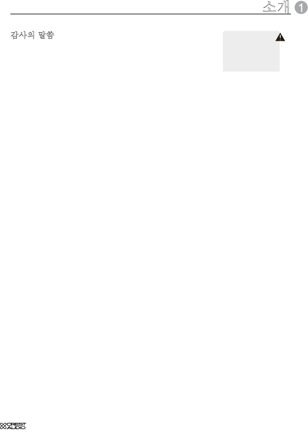 Crest Audio CC™ 시리즈 전원 앰프를 구입해 주셔서 감사합니