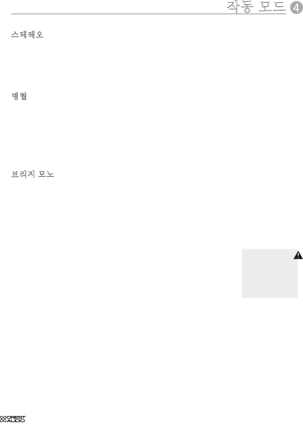병렬(이중 채널/단일 입력) 조작 시 앰프를 끄고 모드 스위치를 병렬로 설