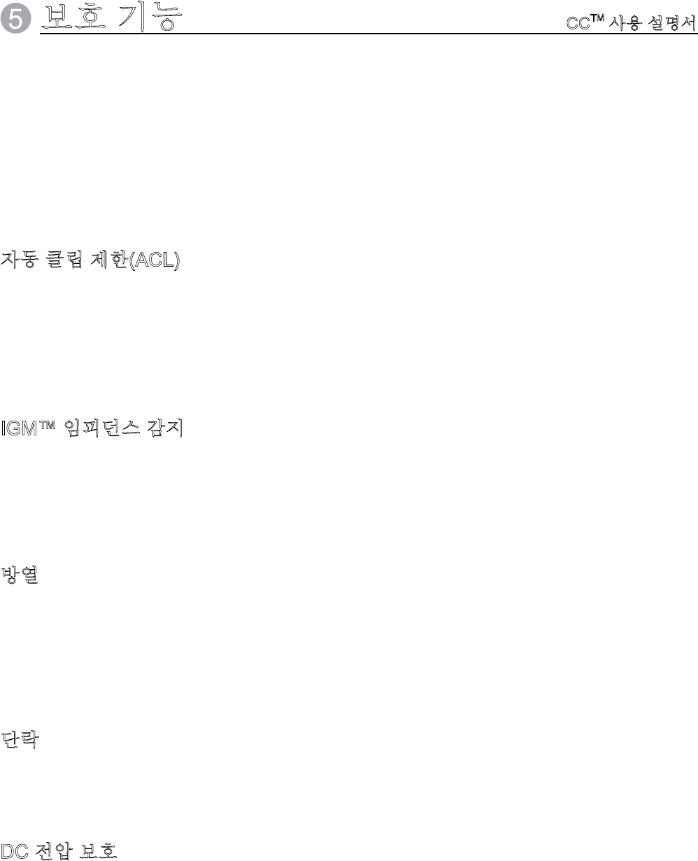 Modulation) 회로가 채널 게인을 안전한 레벨로 조정합니다. 이러한 출력 단계 보호 방식은