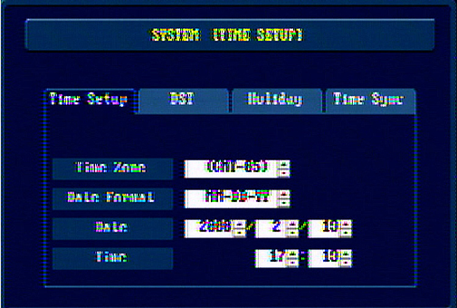 From the Time Setup Menu shown below click the Time Setup tab. Set the Time Zone, Date Format, Date