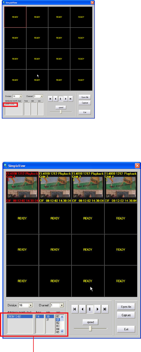 Select the date hour min and second you want simpleview to start playback. You do this by rst clicking on
