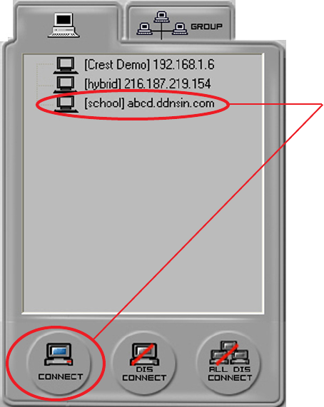 Exit the setup screen, in the site connection box click the DVR that you added to the site registration in this