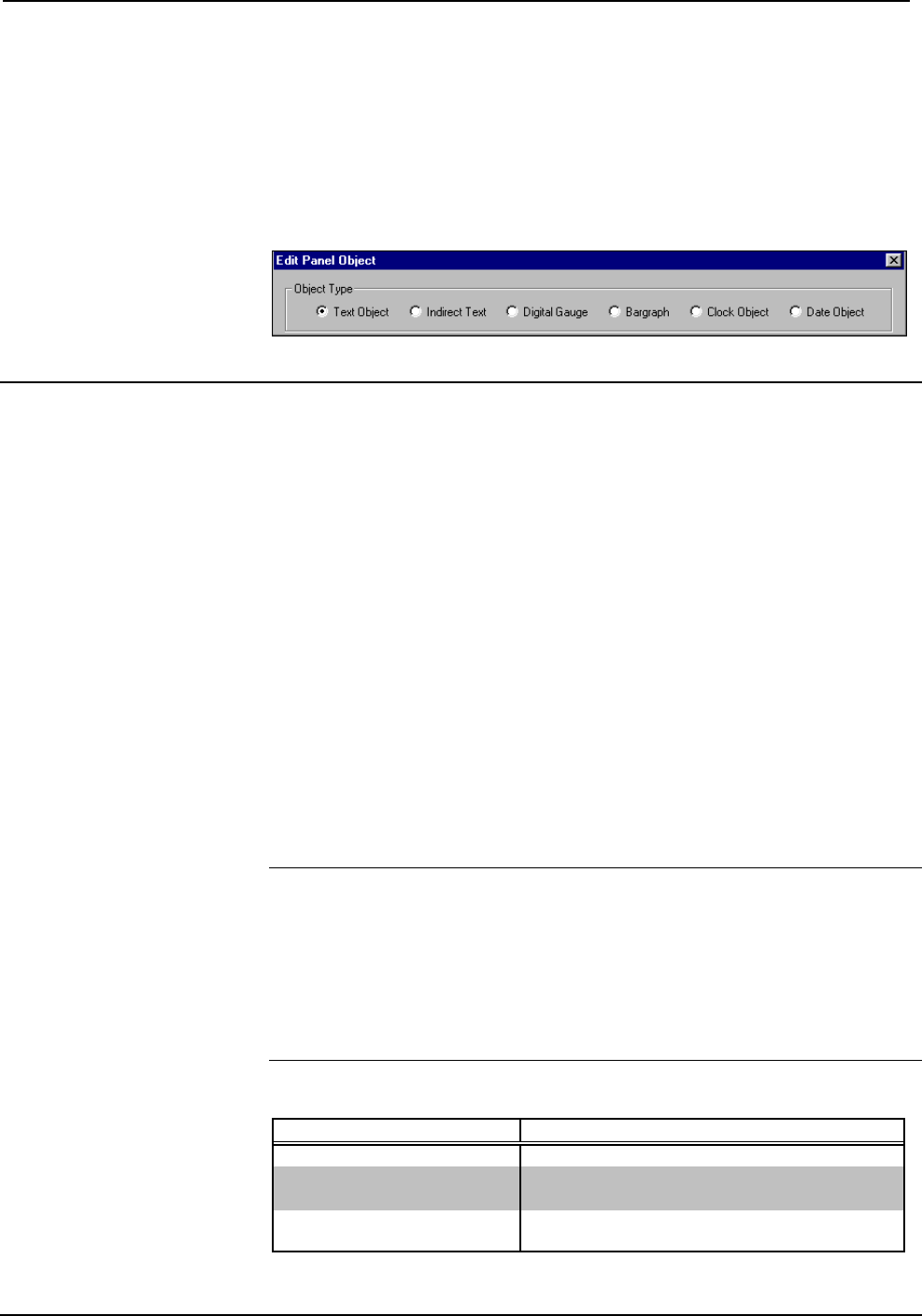 available from the “Edit Panel Object” dialog box, shown below. These object types