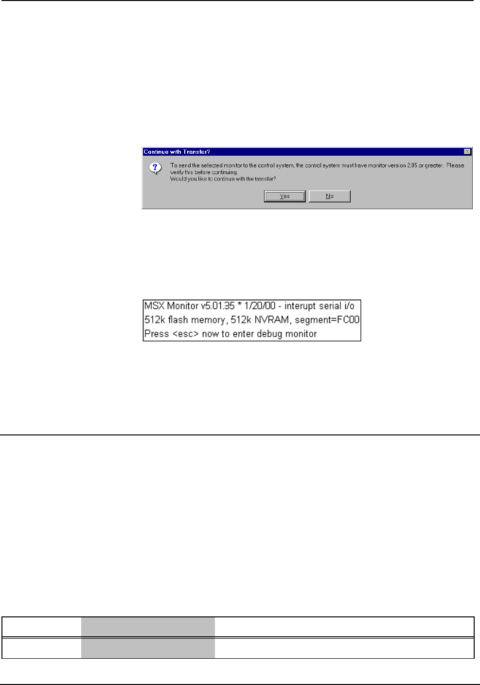 Monitor ROM 5.01.35 and lower), a dialog box shown below appears when