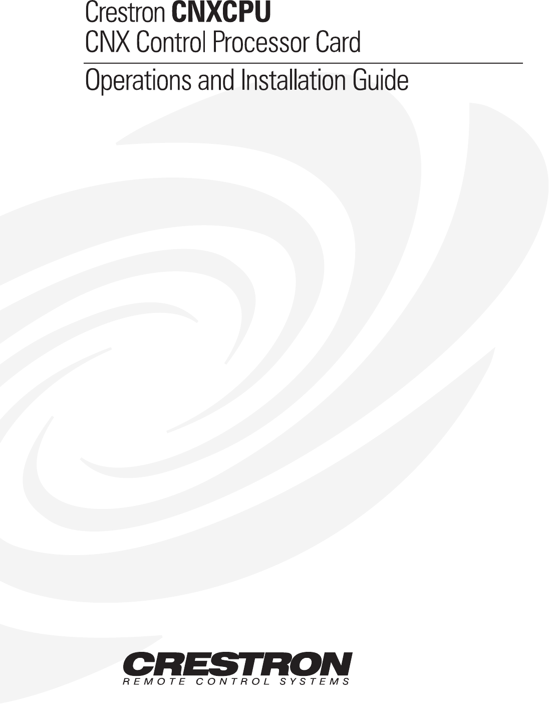 Crestron CNXCPU CNX Control Processor Card Contents CNX Control Processor Card: CNXCPU Description Functional Description Physical Description Leading Specifications Setup Installation or Replacement Hookup Programming with SIMPLTM Windows Problem Solving Troubleshooting Further Inquiries Return and Warranty Policies Merchandise Returns / Repair Service CRESTRON Limited Warranty Operations & Installation Guide - DOC.