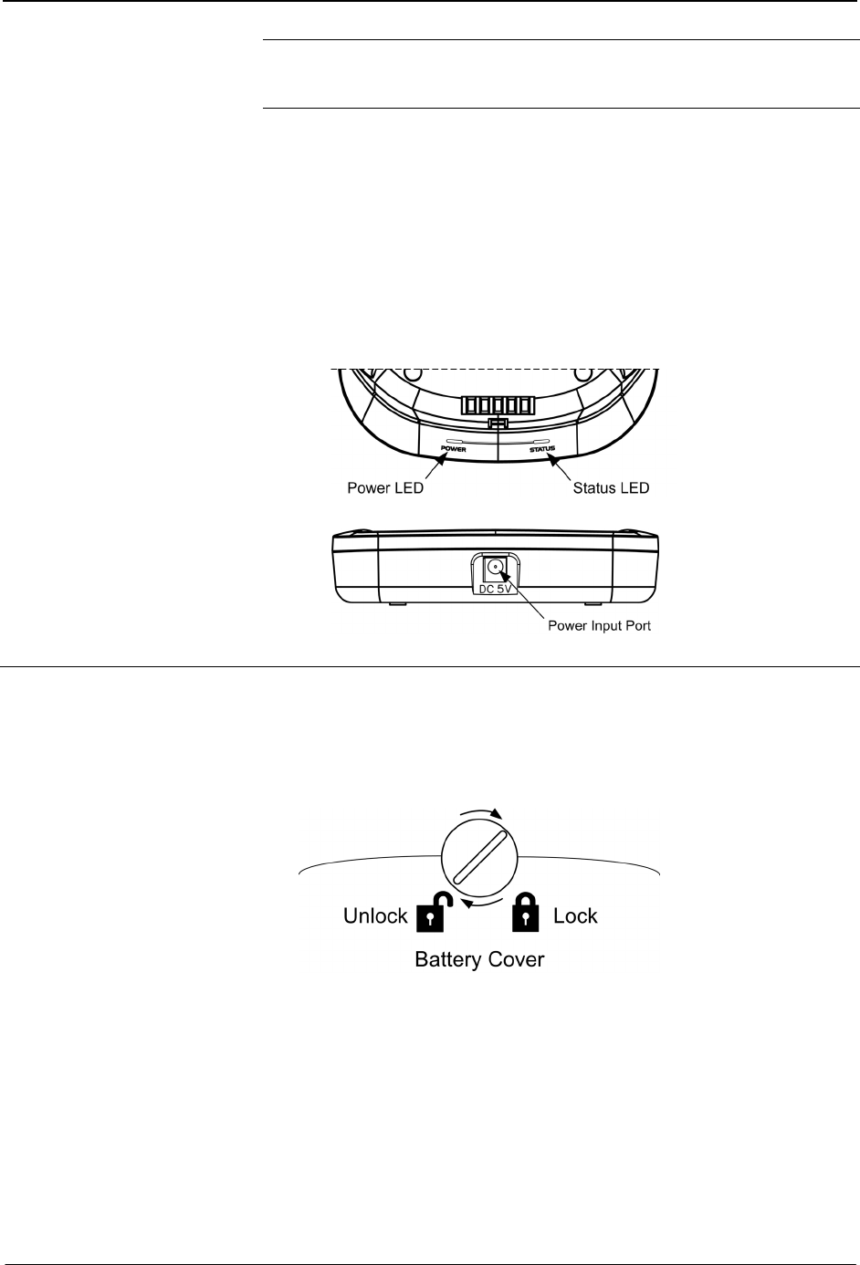 • STATUS Indicator – Red LED indicates charging, blue LED indicates