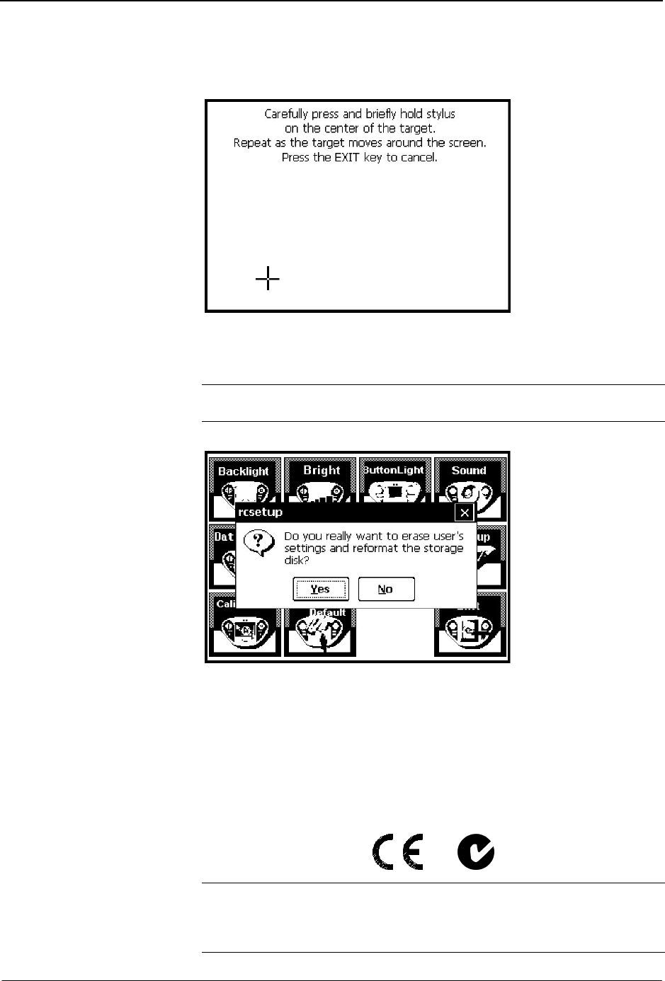 Calibrates the touchscreen. Use a stylus or pen top (not a finger) and follow the