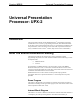 Crestron UPX-2 Universal Presentation Processor Universal Presentation Processor: UPX-2 Introduction This programming manual contains SIMPL Windows® programming instructions, VisionTools® Pro-e (VT Pro-e) programming instructions, and related information for the UPX-2 Universal Presentation Processor. For specifications, installation, and setup information, refer to the latest version of the UPX-2 Operations Guide (Doc. 6276), available from the Crestron® website (http://www.crestron.com/manuals).