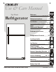 Use & Care Manual Top Mount Refrigerator Welcome 2 Safety Instructions 3 Installation -- Includes Connecting Household Water Supply to Refrigerator 4 - 5 Door Removal & Reversal 6-9 Features at a Glance 9 Temperature Controls 10 Looking Inside 11 - 12 Ice Service 13 Food Storage & Energy Saving Tips 14 Normal Operating Sounds 15 Care & Cleaning Español 16 - 17 Warranty 18 Before You Call 19 20 READ AND SAVE THESE INSTRUCTIONS P/N 241824301 (June 2007)