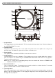 PART NAMES and FUNCTIONS 17 17 16 1 15 14 2 13 12 3 11 4 10 5 7 6 18 19 20 8 9 21 1. 45-rpm Adaptor This adapter allows you to play standard 7” EP vinyl records with large center holes. Place the adapter on the CENTER SPINDLE 7" records. 2. Turntable Platter This platter connects directly to the center spindle. The platter and center spindle holds a vinyl record perfectly center. The platter also spins the record at a consistent speed. 3.