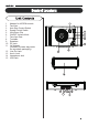 1 2 3 4 5 6 7 8 9 10 11 12 13 14 15 Adapter for 45 RPM records Tone Arm Auto Stop Control Switch Speed Control Switch Hold Down Clip ON/OFF Volume Knob Tone Arm Rest Turntable Speakers DC Jack AC Adapter (Placed in a plastic bag inside the styrofoam packaging) Line Out Jack Aux In Jack Headphone Jack USB Jack 15 3 14