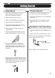 Getting Started Unpacking 1 Remove packing materials form unit. Note: Save all packing materials. 2 Remove plastic bag covering unit. 3 Remove AC ADAPTER(17)form packing. 4 Remove tie from AC ADAPTER(17). 5 Open lid and remove styrofoam shipping material from TURNTABLE(10). 6 Remove black tie-wrap form under the TONE ARM (1). 7 Remove white protective needle cover by gently pulling towards the front of the unit. Power Source 1 Unit the wire on the AC ADAPTER (17).