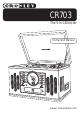 Welcome Thank you for purchasing The 5-In-1 Director (CR703). Before operating this unit, please read this manual thoroughly and retain it for future reference. About This Manual Table of Contents Getting Started Control Locators....................... 4,5 Unpacking................................. 6 Power Source........................... 6 Headphones Jack Operation....... 6 Instructions in this manual describe the control functions of the CR703. Turntable Operation Turntable Operation.................