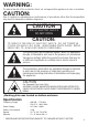WARNING: To reduce the risk of fire or electric shock, do not expose this appliance to rain or moisture. CAUTION: Use of controls or adjustments or performance of procedures other than those specified may result in hazardous radiation exposure. CAUTION RISK OF ELECTRIC SHOCK DO NOT OPEN CAUTION: TO REDUCE THE RISK OF ELECTRIC SHOCK, DO NOT REMOVE COVER (OR BACK). NO USER - SERVICEABLE PARTS INSIDE. REFER SERVICING TO QUALIFIED SERVICE PERSONNEL.