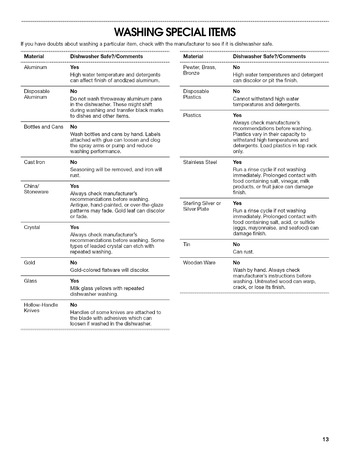 If you have doubts about washing a particular item, check with the manufacturer to see if it is dishwasher safe.